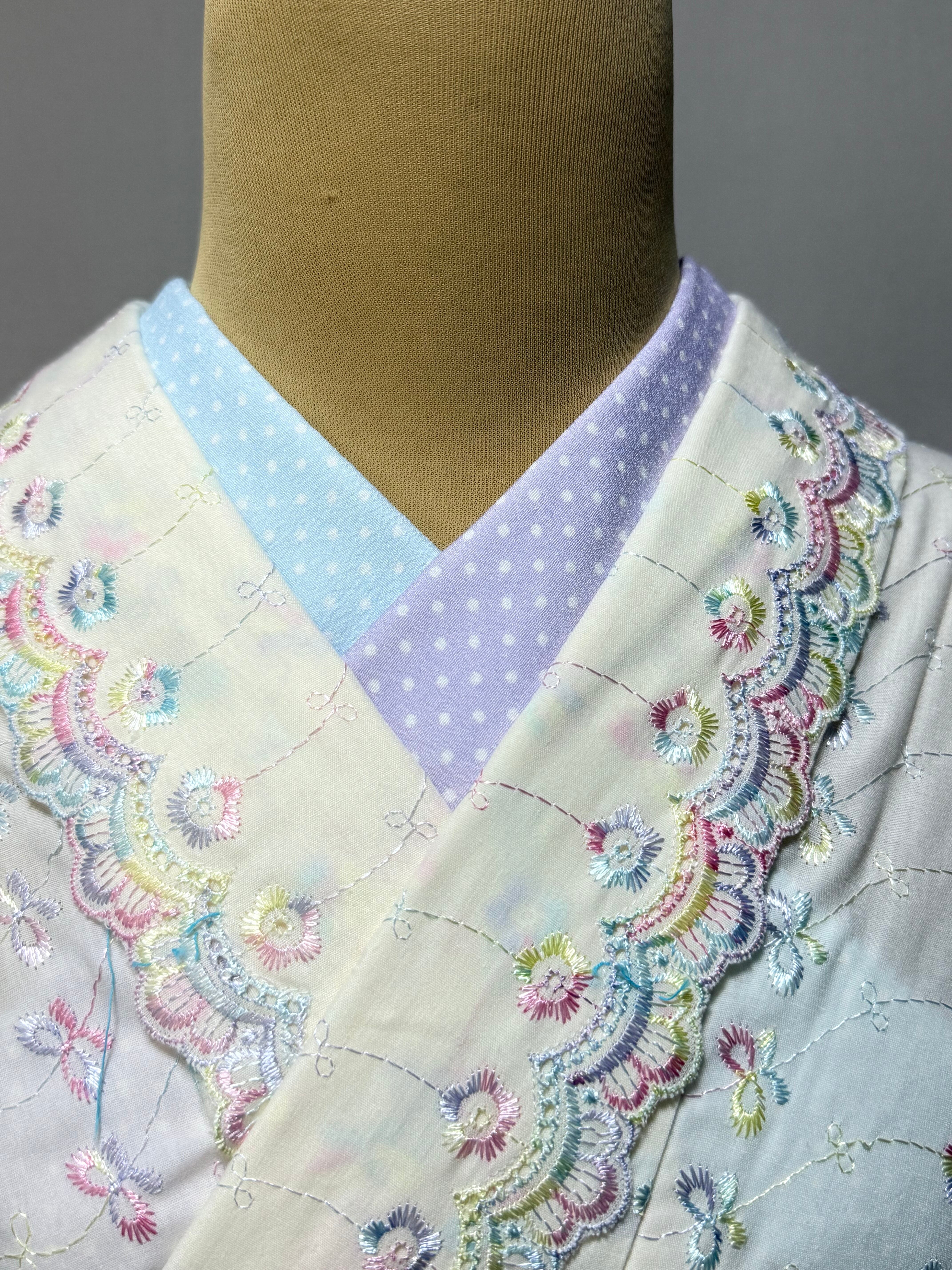 半衿 アシンメトリー/1枚で2通り楽しめる♪ドット・格子/パープルx水色