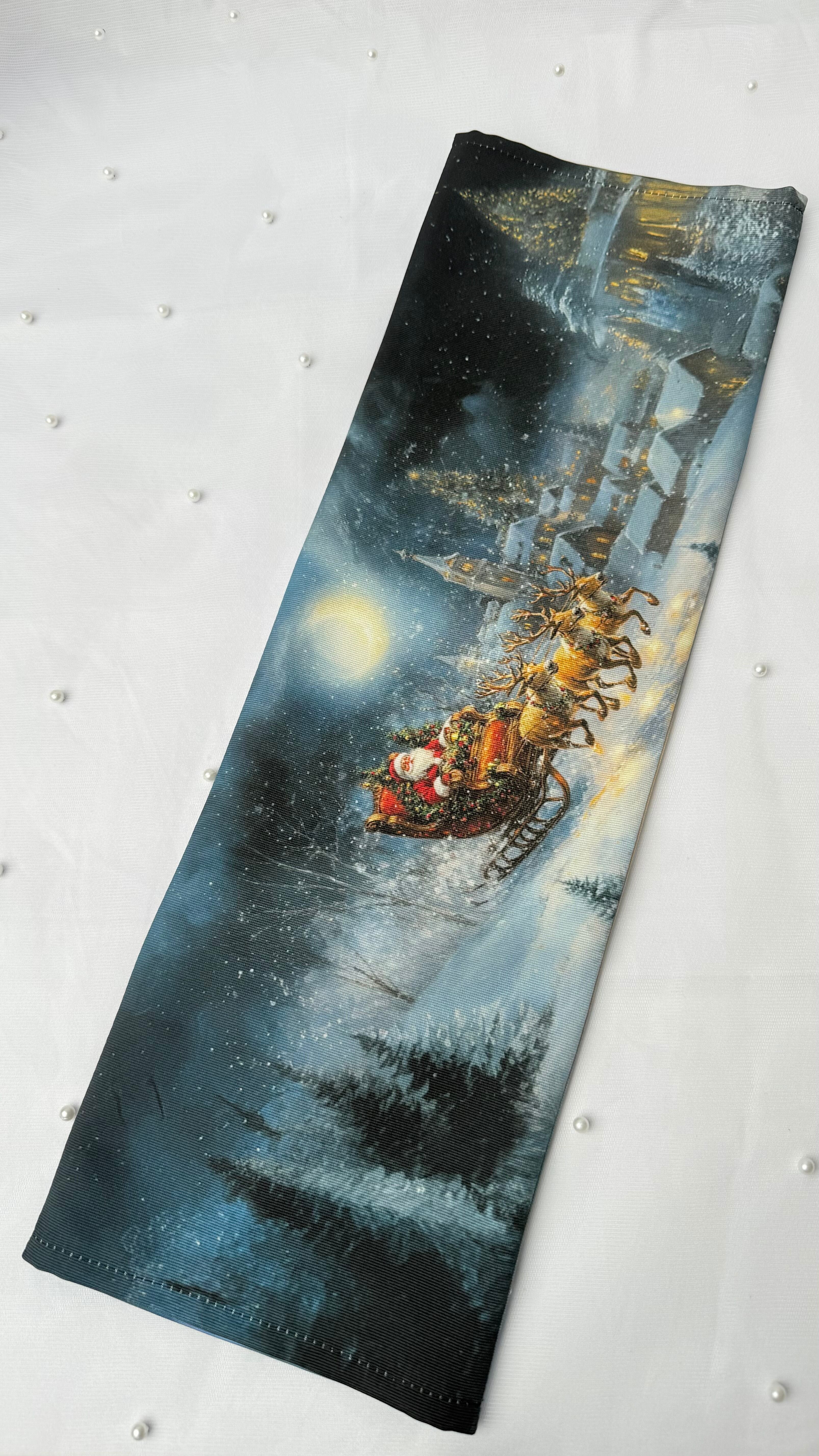 リアルなサンタクロースがソリに乗ってるデザインはクリスマス気分を盛り上げます。