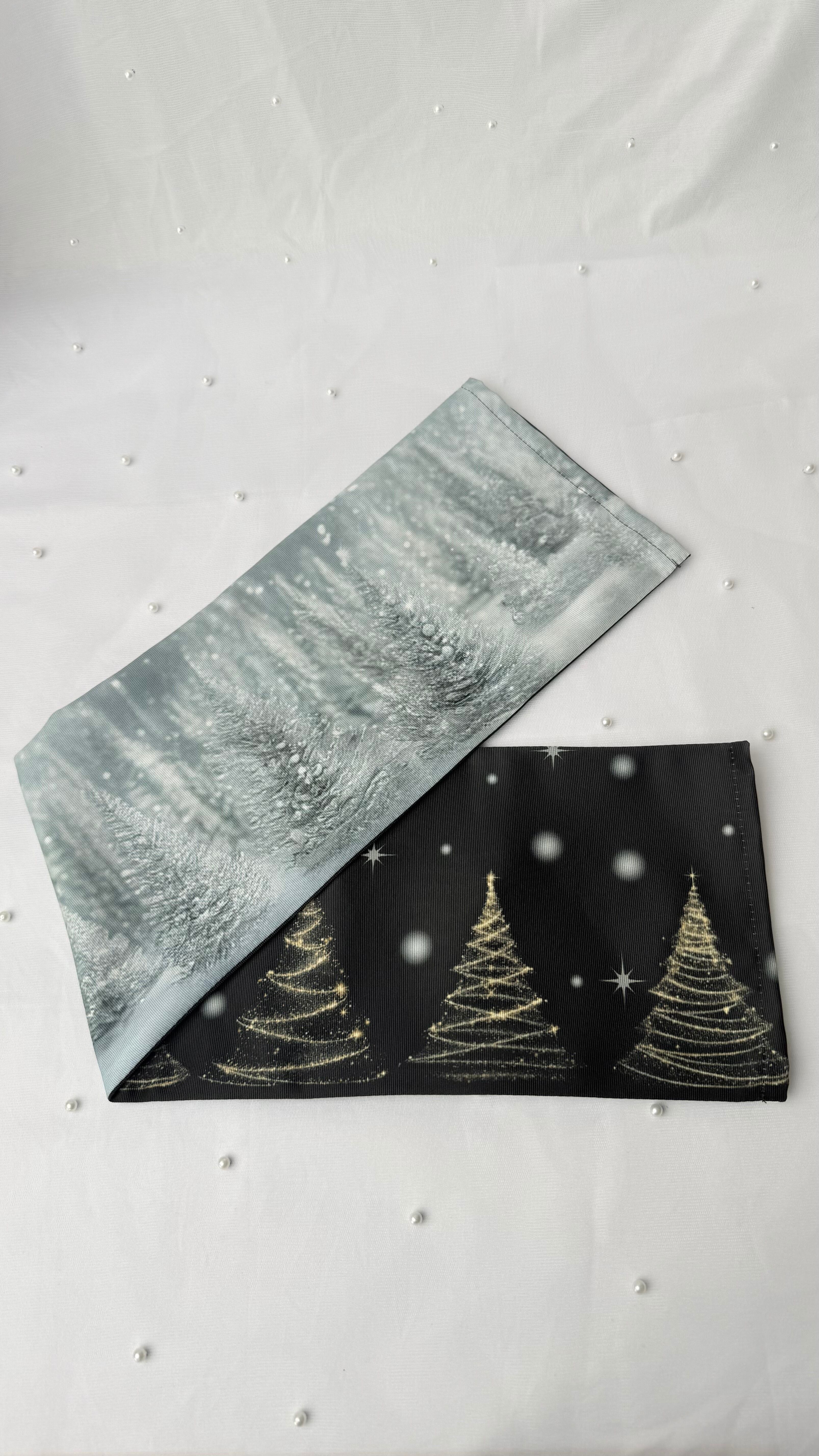キラキラツリーとホワイトクリスマスのリバーシブルデザインにより、一枚で二つの異なる雰囲気を楽しむことができます。