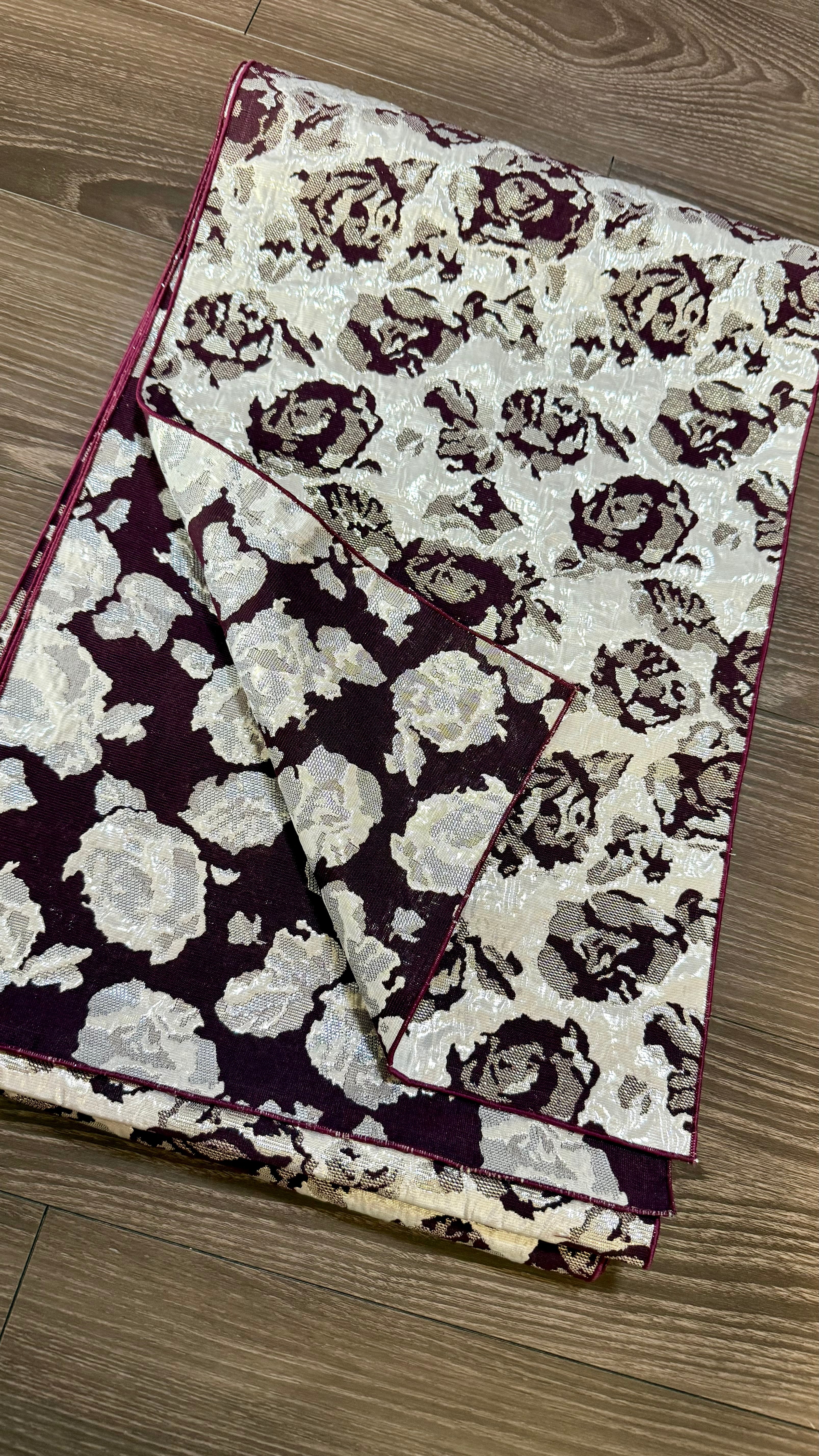 薔薇のモチーフが織り込まれたこの帯は、フォーマルなシーンでもカジュアルな場面でも大活躍!日常を彩る一品として、ぜひお楽しみください。