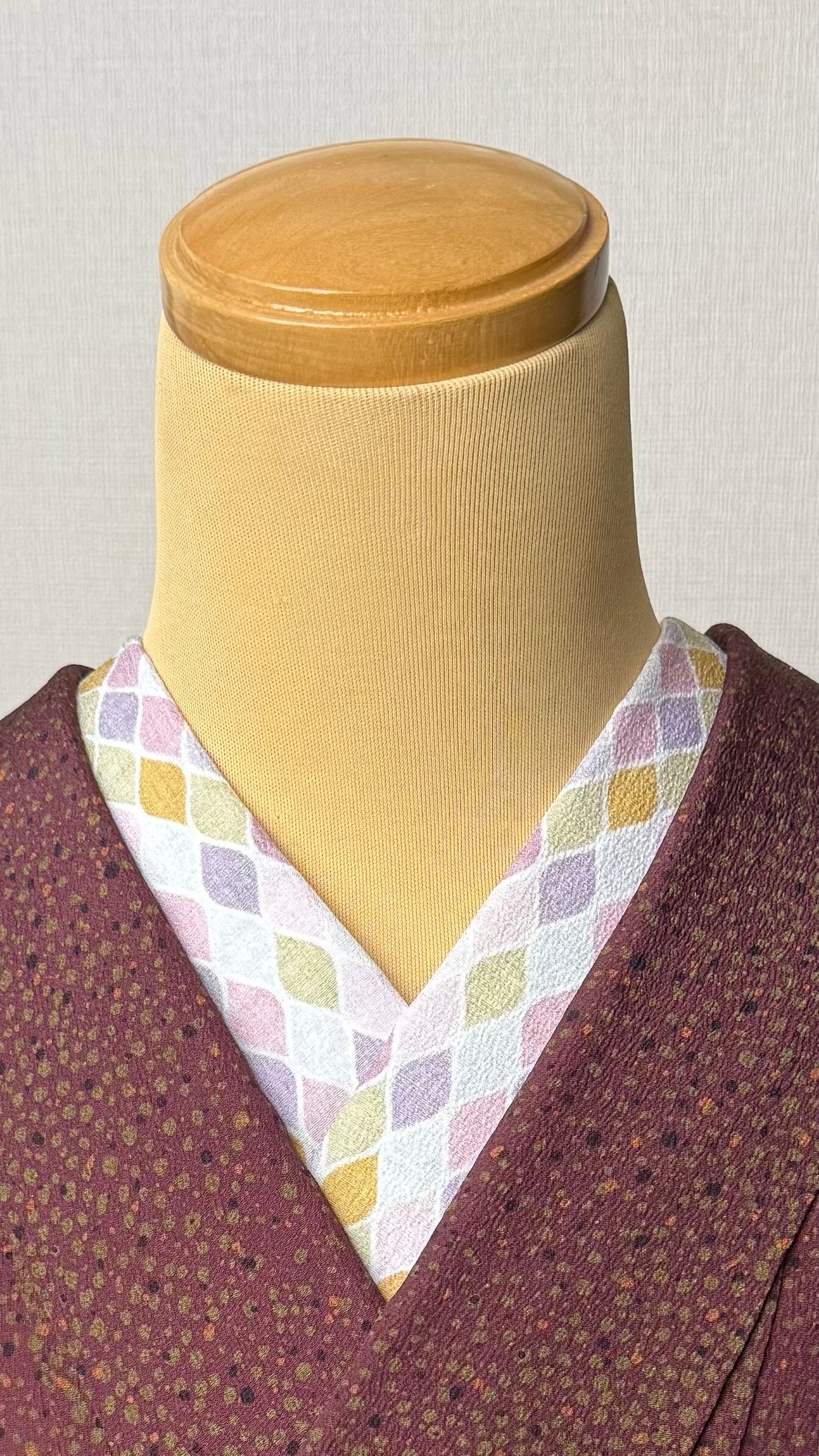 和柄ハート×ダイヤ格子 半衿|2way使用|印象チェンジ|洗える